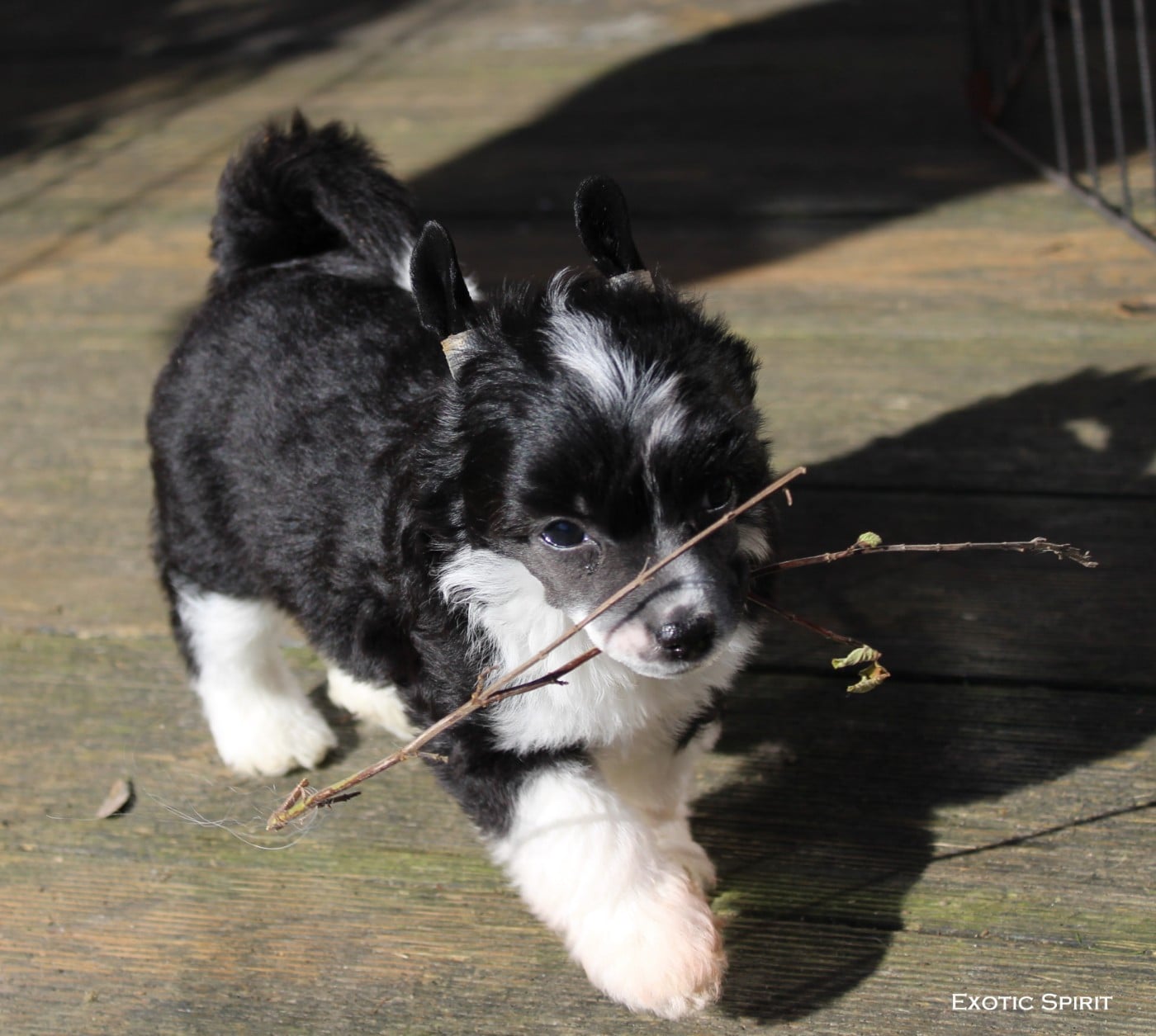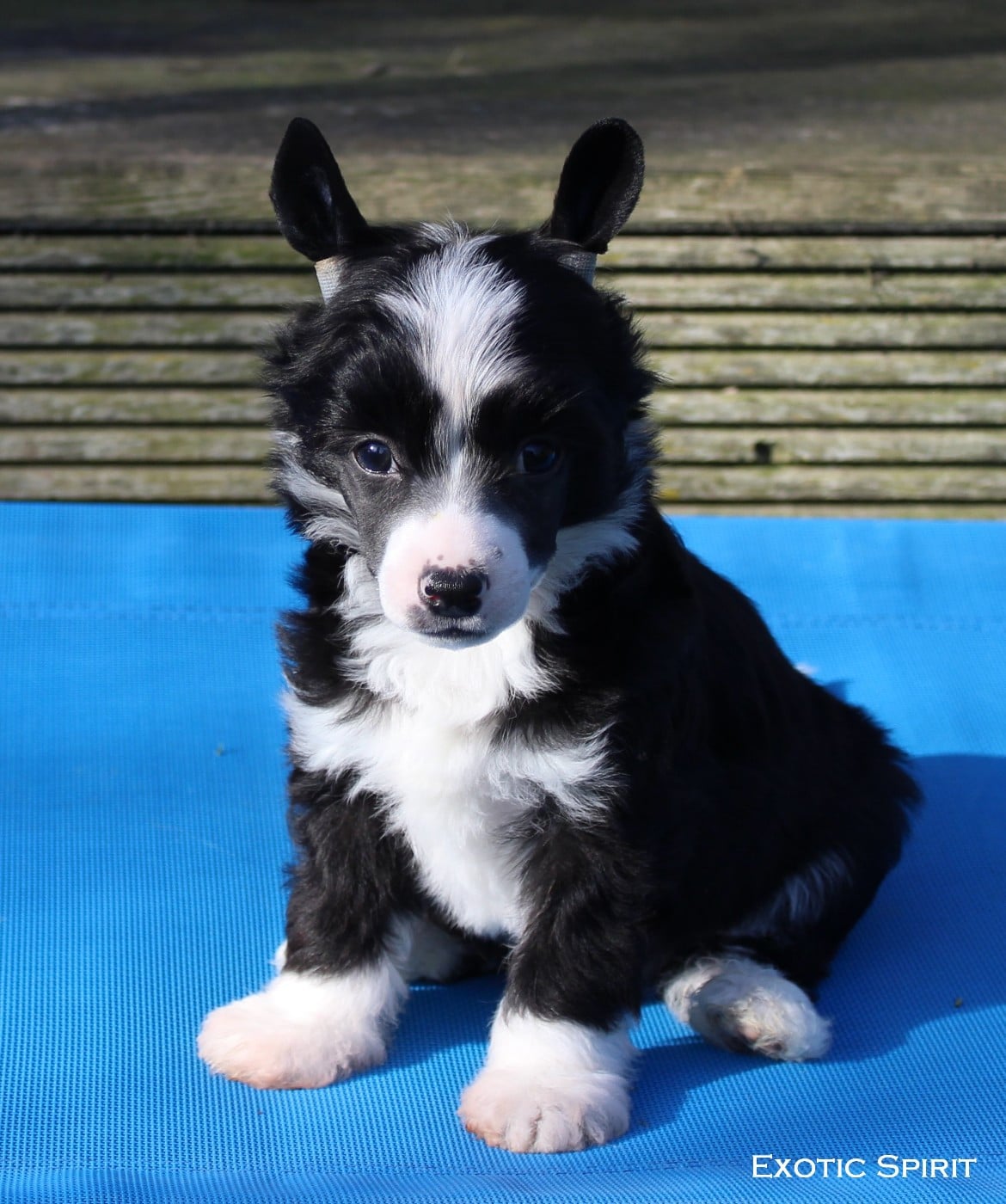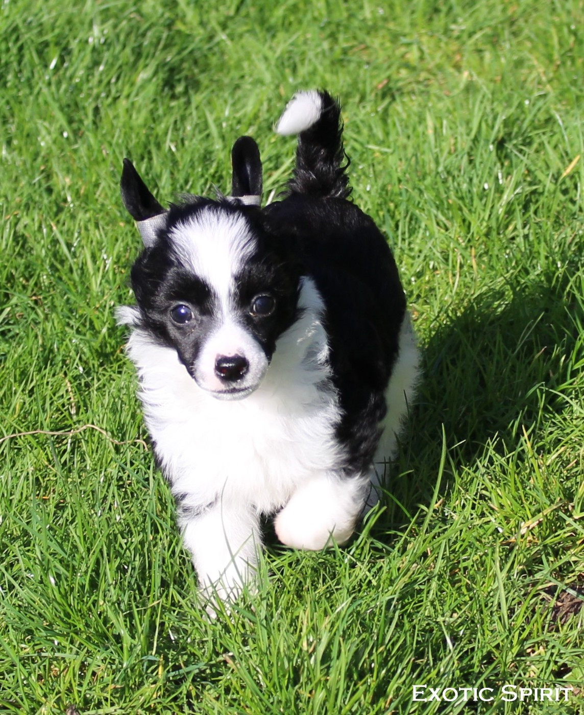 ContactBimble est un superbe Mâle houppette noir et blanc avec très joli marquage blanc. Dejà beaucoup de prestance pour son âge, curieux et joyeux. Il sera pucé, inscrit au LOF, certificat de bonne santé du vétérinaire, primo-vacciné, régulièrement vermifugé, aura son passeport et ses petites affaires personnelles. Parents visibles à la maison. Sain par parentés pour les maladies PLL-A, PRA-prcd, PRA- rcd3. N'hésitez pas à me joindre pour plus d'informations au 06.22.25.07.88.